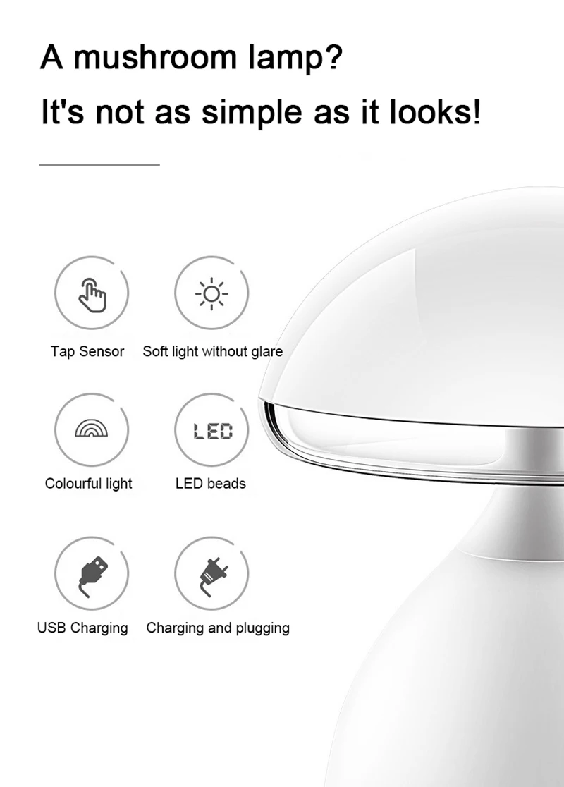 Immagina di tornare a casa dopo una lunga giornata, accendere una luce morbida e vedere l’ambiente trasformarsi in un angolo caldo, elegante e rilassante. Con questa lampada da tavolo portatile a forma di “mushroom”, ogni spazio diventa più accogliente, bello e cheio di charme.